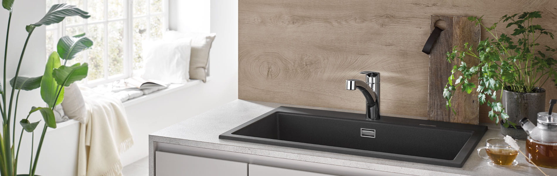The Eurosmart faucet handles every kitchen task with exceptional ease and lasting beauty. GROHE SilkMove technology ensures smooth, precise handle operation, while GROHE QuickFix® Plus requires minimal threading for faster installation.